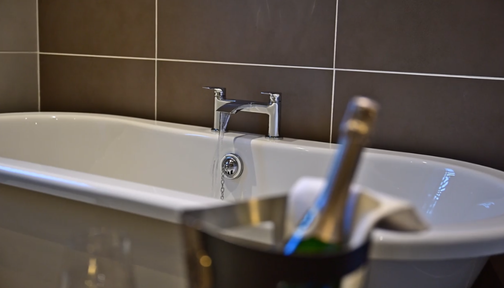 Courtyard setting with ground floor access. King-size bed, roll-top bath and en-suite shower.